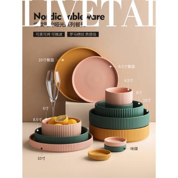 態生活北歐少女心陶瓷碗家用餐具大盤子面碗飯碗菜盤湯碗碗盤組合