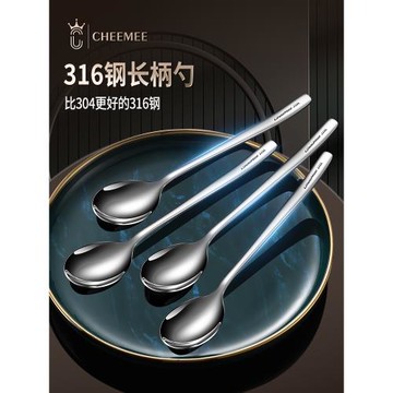 CHEEMEE316不銹鋼勺子家用高檔精致調羹吃飯勺高顏值長柄加深湯勺