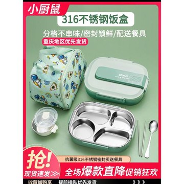 【大綠盒飯盒】316高檔四格兩三格學生餐盤套裝上班族餐盒便當盒L