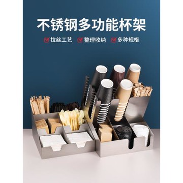 不銹鋼杯架打包一次性紙杯吸管收納盒吧臺分杯架放置架奶茶店專用