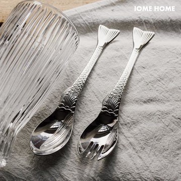 18-10不銹鋼法式復古輕奢美人魚尾浮雕甜品湯勺叉一體出口單