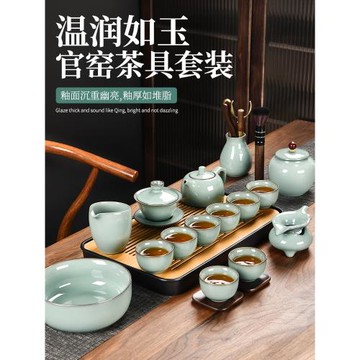 汝窯茶具套裝家用輕奢高檔辦公會客喝茶中式整套陶瓷功夫茶壺茶杯