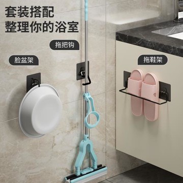 浴室拖鞋架墻壁掛式免打孔衛生間簡易門后不銹鋼收納架墻面整理