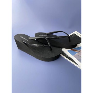 GECKOHOOD 高跟人字拖女2025新款夏增高外穿防滑夾腳涼拖鞋黑色