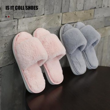 i Slippers 家居室內拖鞋 包頭毛絨 M(25.5cm) 水藍 1雙