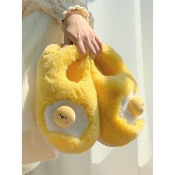 細細條 個性可愛蛋黃棉拖鞋女冬季居家室內防滑保暖毛絨月子鞋ins
