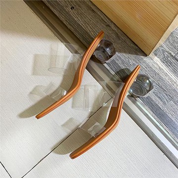 2025夏網紅透明高跟涼鞋女粗跟一字帶外穿水晶跟仙女風百搭涼拖鞋