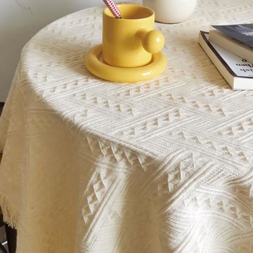 蕾絲桌布ins風小圓桌茶幾餐桌米色蓋布輕奢高級感針織臺布電視柜