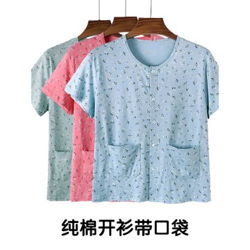 女士純棉開衫短袖薄款加肥大碼中老年人全棉開身媽媽圓領寬松汗衫