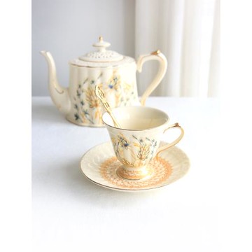 唯美復古浮雕文藝北歐英式法式下午茶陶瓷咖啡杯碟辦公室家用水杯