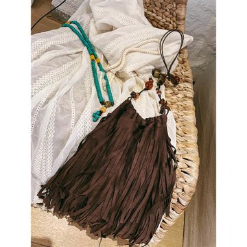自制西部風鹿皮絨咖色珠珠流蘇包度假風單肩斜挎復古小包音樂節
