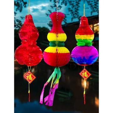 五月節端午節五彩小紙葫蘆水晶塑料掛飾商場裝飾燈籠東北蘋果