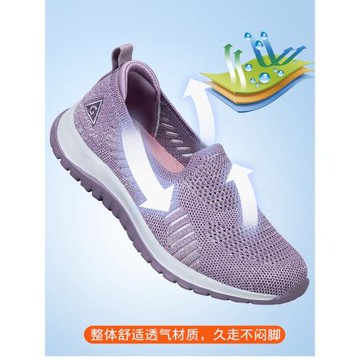 老北京布鞋女新款夏季飛織網鞋透氣網面中老年人運動防滑媽媽涼鞋