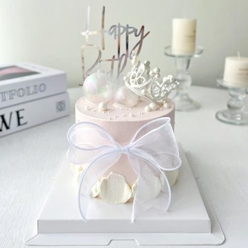小仙女皇冠蛋糕裝飾女孩生日蛋糕白色絲帶蝴蝶結小珍珠銀皇冠擺件