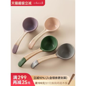 onlycook家用陶瓷湯勺長柄盛湯大號日式粗陶勺子湯匙粥勺公勺創意