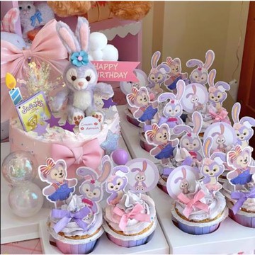 紫色毛絨兔子蛋糕裝飾擺件星兔兔生日插牌插件史黛拉兔子兔兔插件