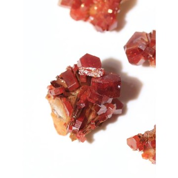 G15摩洛哥釩鉛礦標本花片狀原石紅色熒光貓礦科普標本礦物晶體
