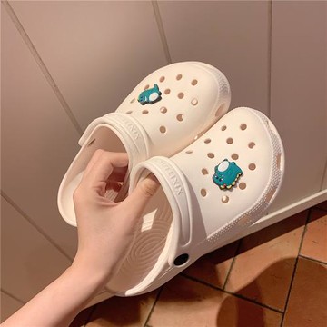 韓版ins時尚情侶純色eva洞洞鞋女夏季外穿海邊防滑踩屎感沙灘鞋男