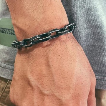 復古個性斜紋竹節鏈男生鈦鋼嘻哈手鏈潮流男士小眾做舊鏈子飾品潮