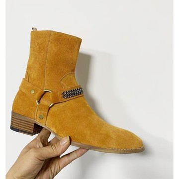 切爾西靴男2025歐美新款潮流個性時尚大氣尖頭環扣磨砂皮馬丁靴鞋