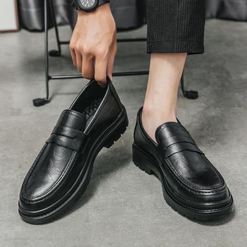 男士樂福鞋新款英倫風商務正裝亮面一腳蹬大頭鞋厚底增高休閑皮鞋