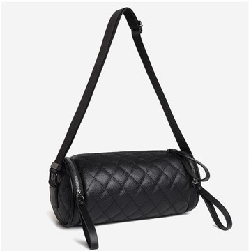 真皮波士頓菱格圓筒包2024新款潮大容量圓桶包斜跨寬帶圓形枕頭包
