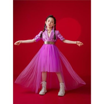 跨境女童禮服公主裙女孩六一主持人演出表演服裝小眾設計感連衣裙