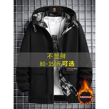 夾克男休閑寬松外套秋冬加肥加大碼加絨連帽風衣潮流百搭工裝上衣