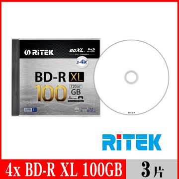 RITEK 4x BD-R XL 100GB 珍珠白可列印式/單片盒裝3入