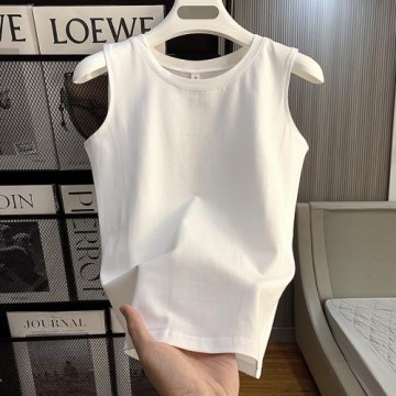 2025春季新款韓版白色純棉背心無袖t恤女寬松顯瘦圓領運動打底衫
