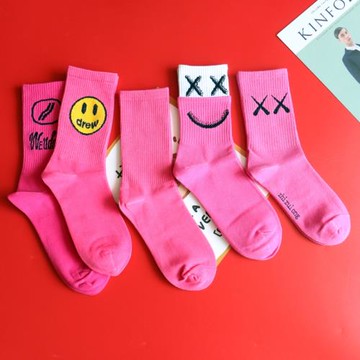 春季潮流襪子薄款中筒男女ins潮街頭嘻哈滑板運動字母長襪玫紅色