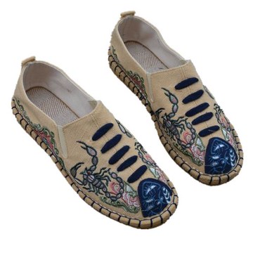 中國風帆布刺繡蝎子鞋千層布鞋男繡花潮流透氣亞麻休閑漢服縫制鞋