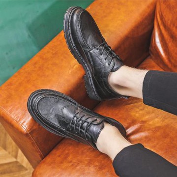 英倫厚底增高布洛克圓頭休閒皮鞋復古做舊雕花婚鞋男
