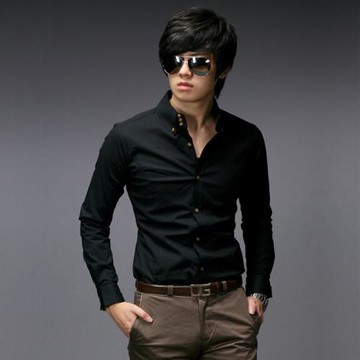 韓國單外貿男裝四季款男士休閑長袖襯衫麂皮貼肘補丁襯衣男襯衫潮