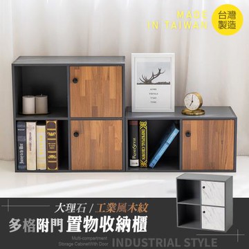 【Style 格調】大理石紋/工業風磁吸式拉門收納櫃(收納櫃/書櫃/附門)-兩門兩空格