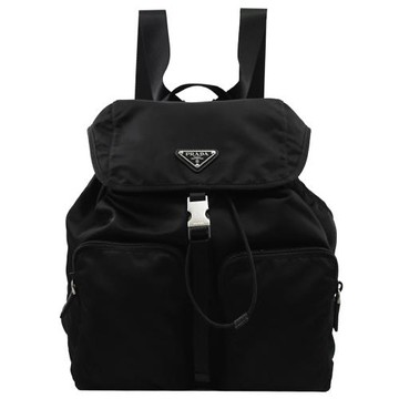 PRADA 1BZ005 經典三角LOGO尼龍抽繩商旅大後背包.黑