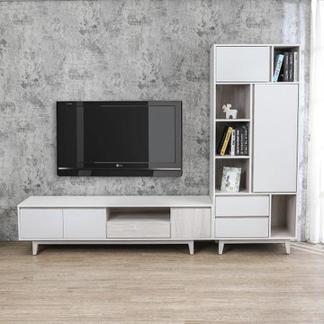 Boden-克萊妮8.7尺L型電視櫃組合(2.6尺展示收納書櫃+6尺電視長櫃)
