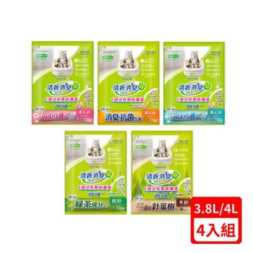 Unicharm Pet清新消臭 消臭抗菌貓砂3.8L-4L(沸石砂/紙砂/針葉砂) X(4入組)