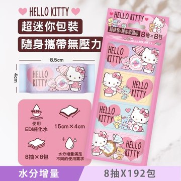 Hello Kitty 超迷你純水濕紙巾/柔濕巾 8 抽 X 192 包 - 水分增量版 口袋隨身包