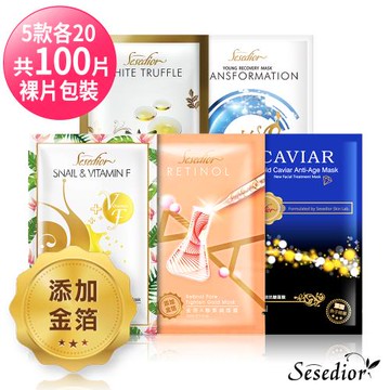 Sesedior 輕奢華金箔系列面膜5款各20共100片(裸片包)