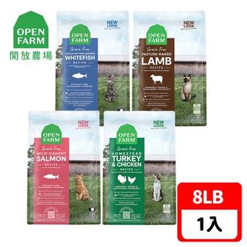 【OPEN FARM 開放農場】自然農選無穀寵糧-野撈鮮鮭魚/野撈季節白魚/草原野牧羊/放養跑山雞&火雞-8LB-全齡貓