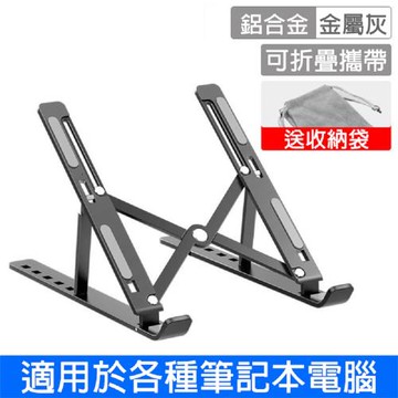 Home Planet 可折疊便攜型鋁合金筆電支架 附收納袋 金屬灰 1個