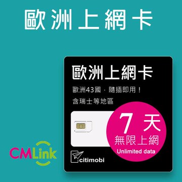 【citimobi 上網卡】eSIM歐洲43國上網卡 - 7天上網吃到飽(1GB/日高速流量)