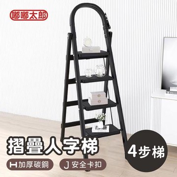 立刻下載【嘟嘟太郎-加厚碳鋼折疊人字梯(四步梯)】 工作梯 A字梯 馬椅