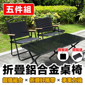 點我下載【野一夏】野餐露營桌椅組五件式|蛋捲桌1張+特大號克米特椅2張+置物架 附贈收納袋