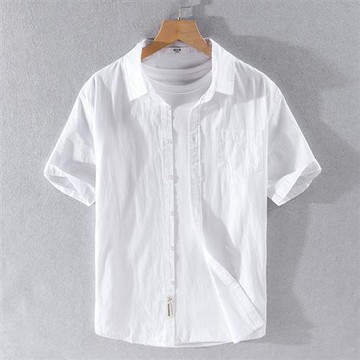 亞麻短袖襯衫男夏季外套潮流簡約白襯衣半袖寸衫薄款透氣棉麻上衣