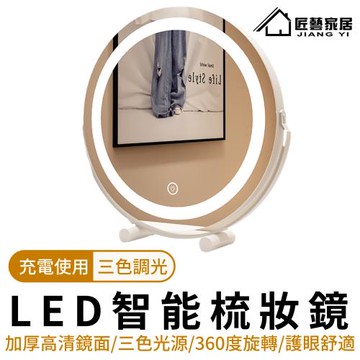 【匠藝家居】梳妝鏡 化妝鏡 鏡子 可調光LED鏡 補光燈 化妝燈 台式補光鏡【充電款-皓月白大號】