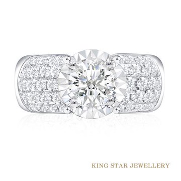 King Star 一克拉Dcolor鑽石18K金戒指(3Excellent 八心八箭完美車工)