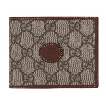 GUCCI GG Supreme 塗層帆布二折卡片小短夾(米色/烏木色)