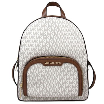 MICHAEL KORS Jaycee 中款金字Logo滿版MK雙層後背包(香草白棕)